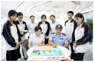 為普及電力設施保護及用電安全知識,國網(wǎng)新疆電力有限公司昌吉供電公司近日聯(lián)合新疆維吾爾自治區(qū)昌吉市公安局北方南路派出所,在昌吉雪蓮營業(yè)廳為昌吉第四中學學生開展普法宣傳活動,圖為活動現(xiàn)場。 本報通訊員 張桂花 攝