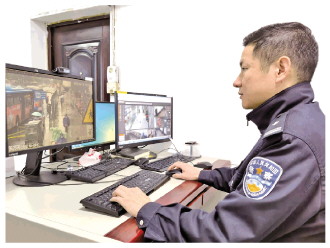 圖為薛文偉通過監(jiān)控追蹤嫌疑人軌跡。
