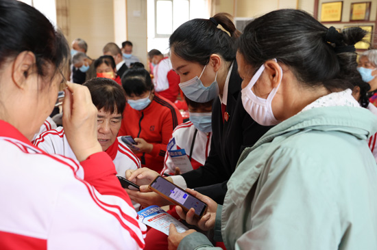 法院干警指導(dǎo)老年大學(xué)學(xué)生們安裝國家反詐中心APP并進(jìn)行實名認(rèn)證。
