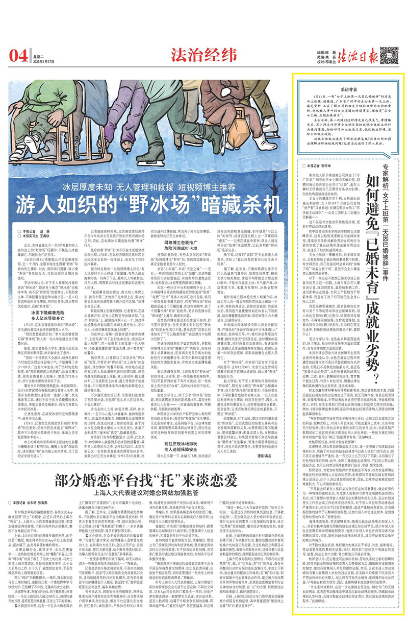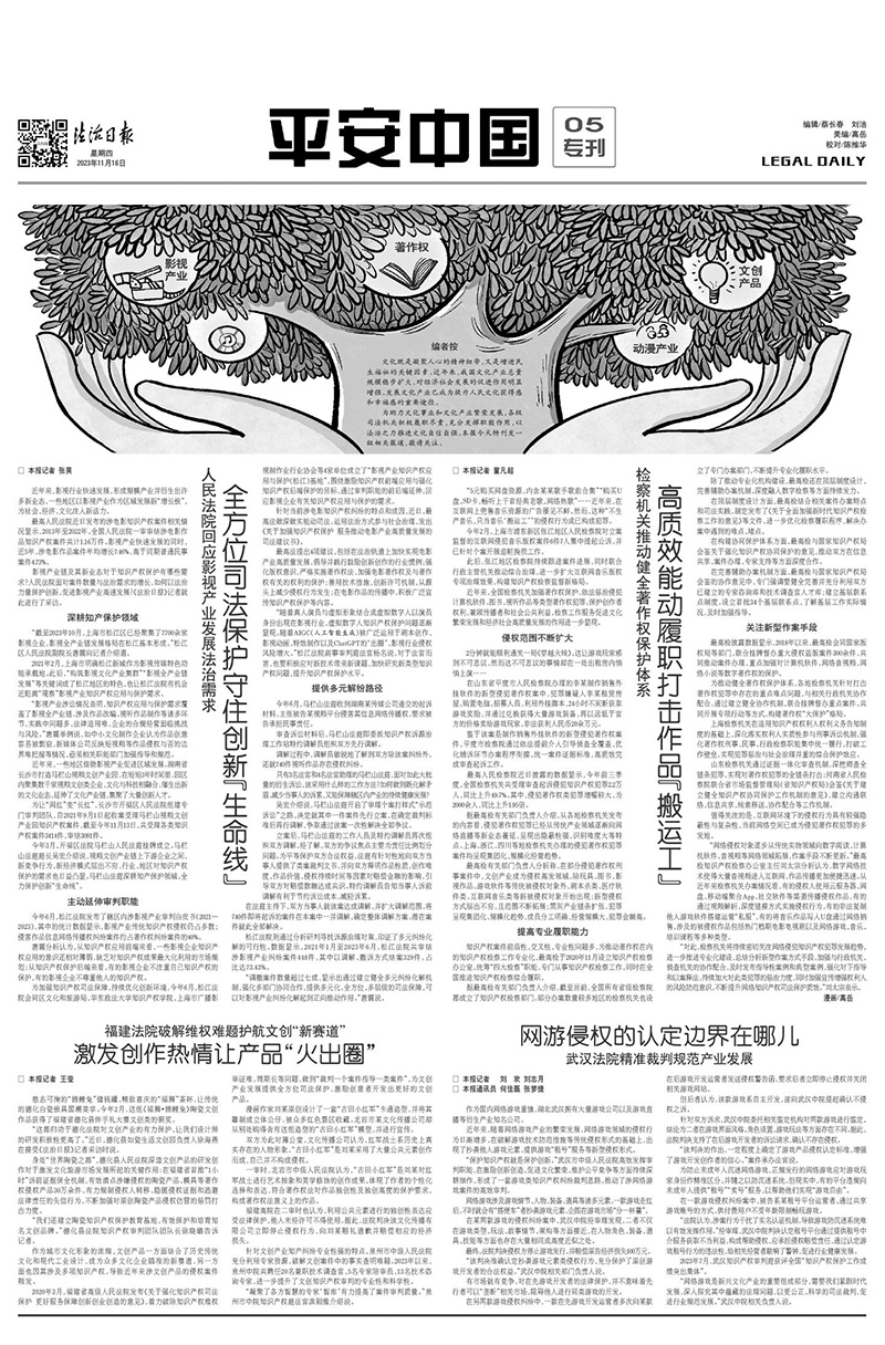 緊盯熱點(diǎn)話題,找準(zhǔn)法治切入點(diǎn),做好全鏈條考量,確保專業(yè)快速發(fā)聲,有力有效引導(dǎo)社會(huì)輿論。持續(xù)做好一版“法治時(shí)評(píng)”欄目,全年推出約200篇評(píng)論。針對(duì)四川一幼童遭大型犬撕咬、“婆孫插隊(duì)門”等突發(fā)社會(huì)熱點(diǎn)新聞,及時(shí)解析背后的各種法律問題,為公眾提供主流價(jià)值、觀點(diǎn)和思考。淄博燒烤、“村超”“村BA”爆火后,組織記者深入現(xiàn)場(chǎng)調(diào)查采訪,探尋基層社會(huì)治理創(chuàng)新模式。