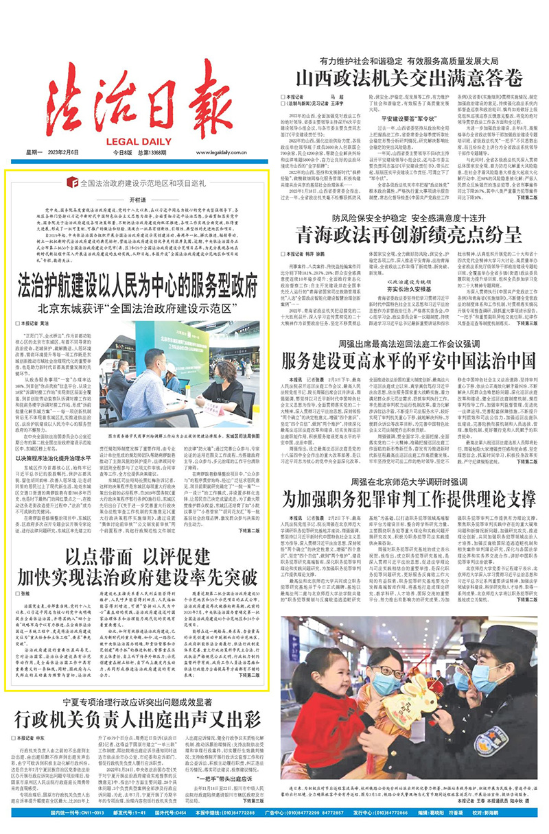 2023年2月6日,“全國(guó)法治政府建設(shè)示范地區(qū)和項(xiàng)目巡禮”專欄在《法治日?qǐng)?bào)》1版開欄