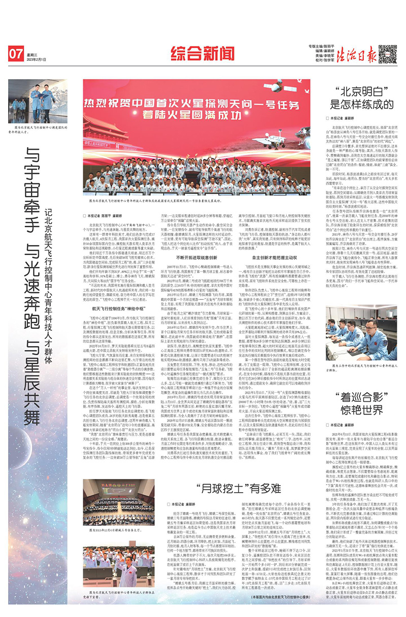 2023年2月1日《法治日?qǐng)?bào)》7版,以整版報(bào)道展現(xiàn)北京航天飛行控制中心青年科技英才風(fēng)采
