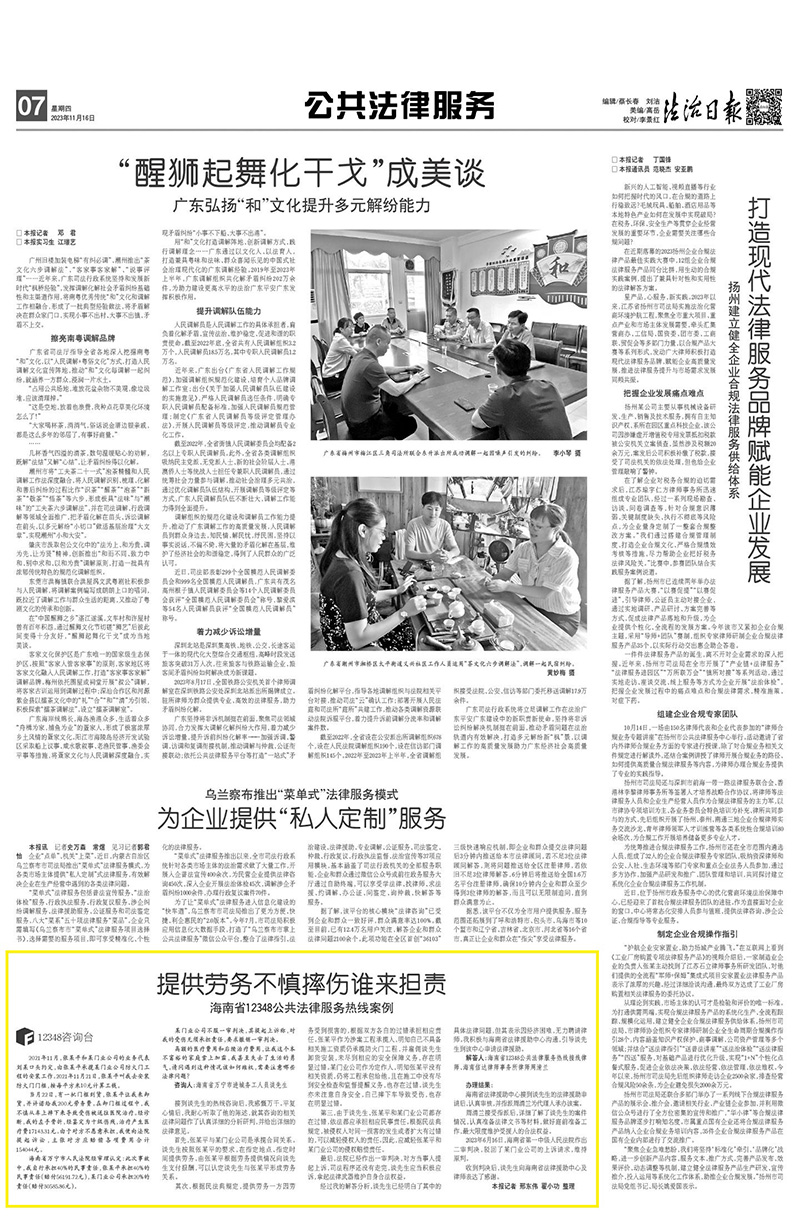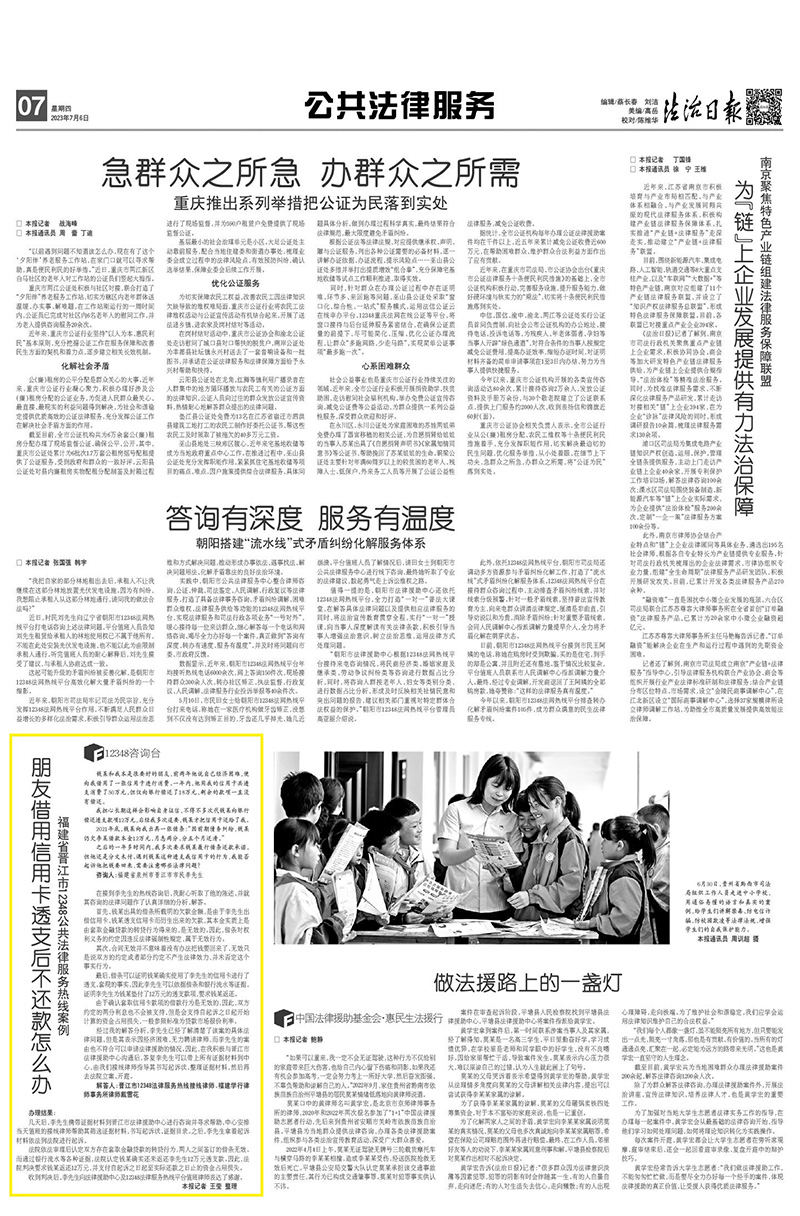 積極搭建公共法律服務(wù)平臺(tái)。做好《法治日?qǐng)?bào)》公共法律服務(wù)版;通過“12348咨詢臺(tái)”欄目、法治網(wǎng)“律師”頻道等平臺(tái),為群眾提供優(yōu)質(zhì)便捷法律服務(wù);法治日?qǐng)?bào)微信公眾號(hào)在菜單欄設(shè)置“國(guó)家法律法規(guī)數(shù)據(jù)庫(kù)”入口,方便讀者進(jìn)行法律檢索查詢。法治號(hào)客戶端設(shè)置服務(wù)頻道,打造一站式涉法服務(wù)“超市”。