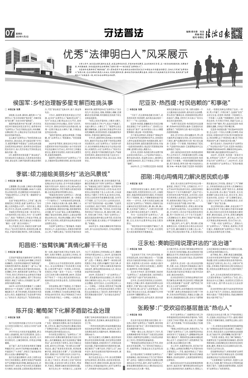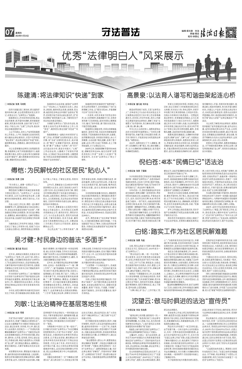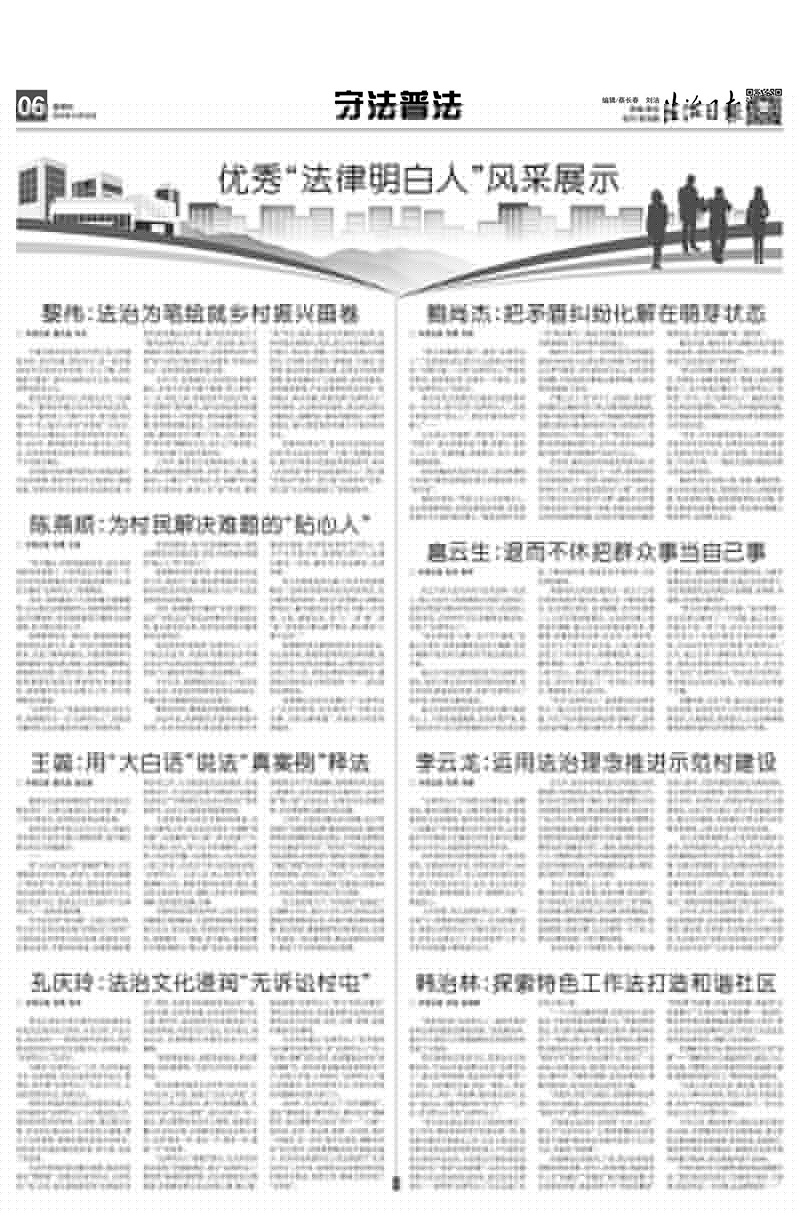 將更多筆墨對(duì)準(zhǔn)基層一線,推出一系列有態(tài)度、有溫度、有力度、有深度的新聞報(bào)道?!斗ㄖ稳?qǐng)?bào)》用3個(gè)專版集中展示優(yōu)秀“法律明白人”扎根基層、助力社會(huì)治理的生動(dòng)故事。《法治日?qǐng)?bào)·社區(qū)版》全年共推出52塊“平安中國(guó)·身影”版,展現(xiàn)170余名基層法治工作者的堅(jiān)持、付出與擔(dān)當(dāng)。