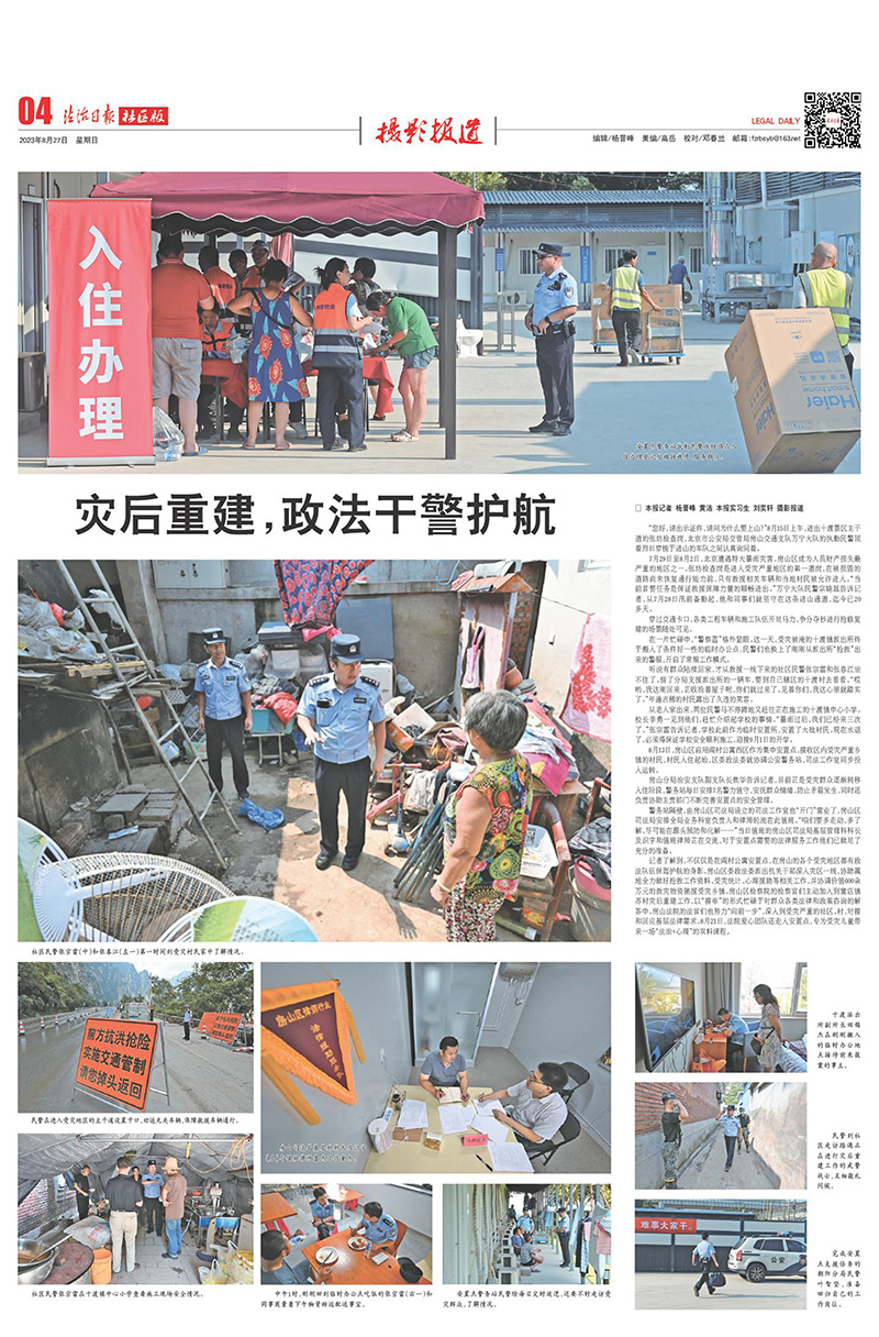 2023年8月27日《法治日?qǐng)?bào)·社區(qū)版》4版《災(zāi)后重建,政法干警護(hù)航》攝影專版