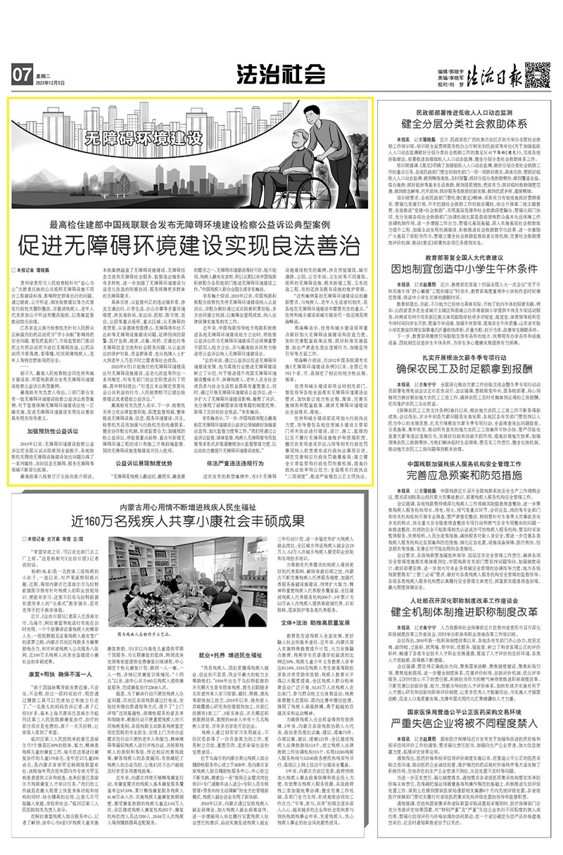 關(guān)注老年人、殘疾人、婦女兒童權(quán)益保護(hù)。推出“破解數(shù)字時(shí)代老年人社交困境”“關(guān)注未成年人心理健康”等多個(gè)專題報(bào)道,常態(tài)化開設(shè)“青少年與法”專版、頻道,關(guān)注“外嫁女”維權(quán)難題和殘疾人權(quán)益保障體制機(jī)制建設(shè),堅(jiān)持人文關(guān)懷,堅(jiān)守使命初心。
