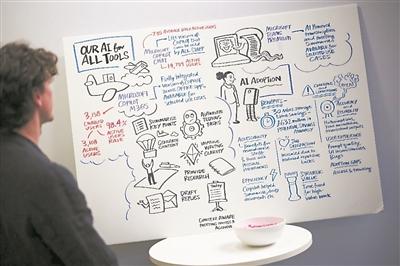 第九屆倫敦AI峰會(huì)期間,一位參觀者在觀看展板上的內(nèi)容,介紹AI在各方面的應(yīng)用。圖片來源:物理學(xué)家組織網(wǎng)