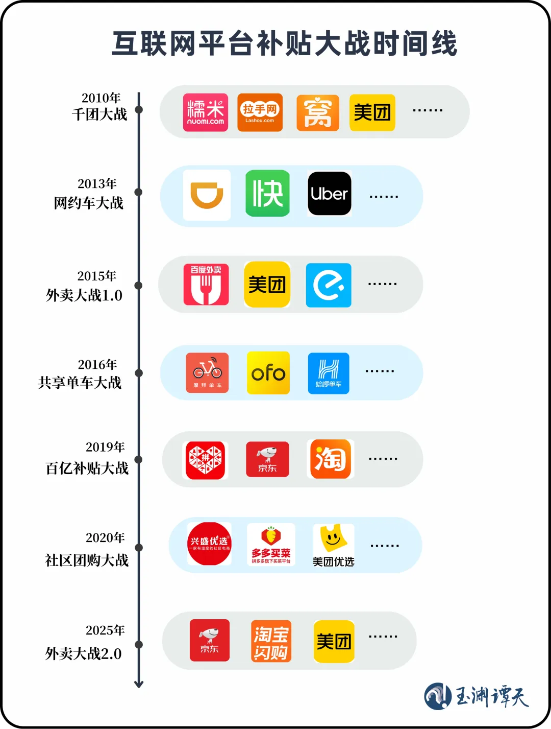 從這張圖上就能看到,每隔一段時間,互聯(lián)網(wǎng)平臺就會在一些領(lǐng)域發(fā)起新的“大戰(zhàn)”。