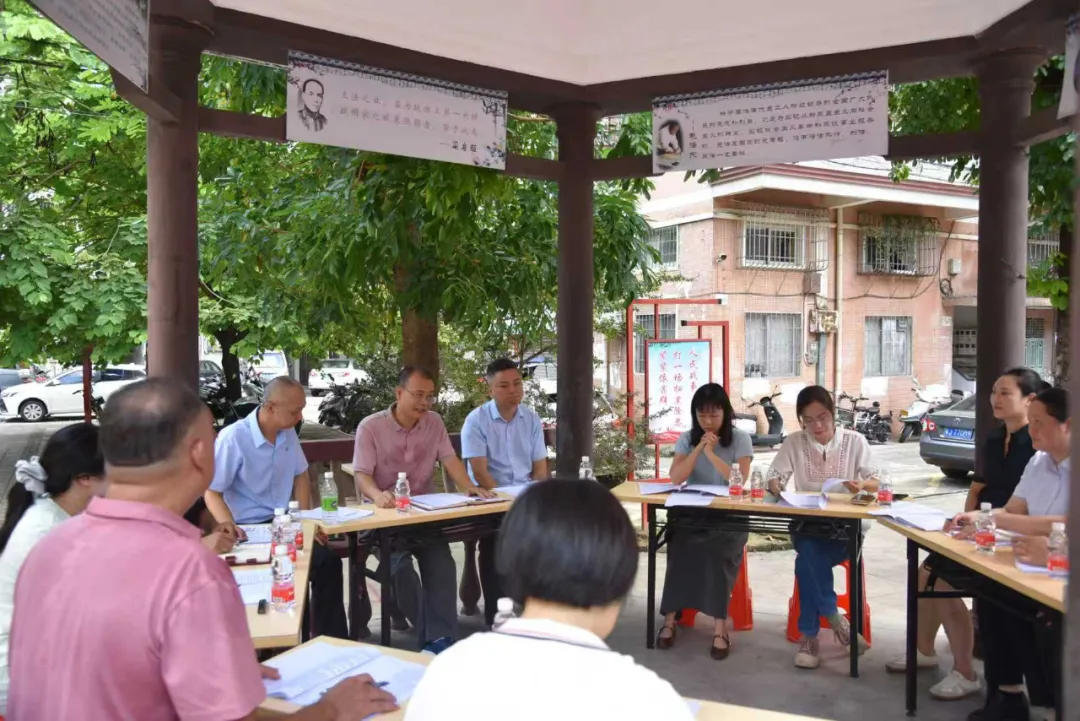 2025年7月16日,廣東江?;鶎恿⒎?lián)系點在禮樂街道文苑社區(qū)召開城市居民委員會組織法(修訂草案)意見征集涼亭下座談會。(全國人大常委會法工委供圖)
