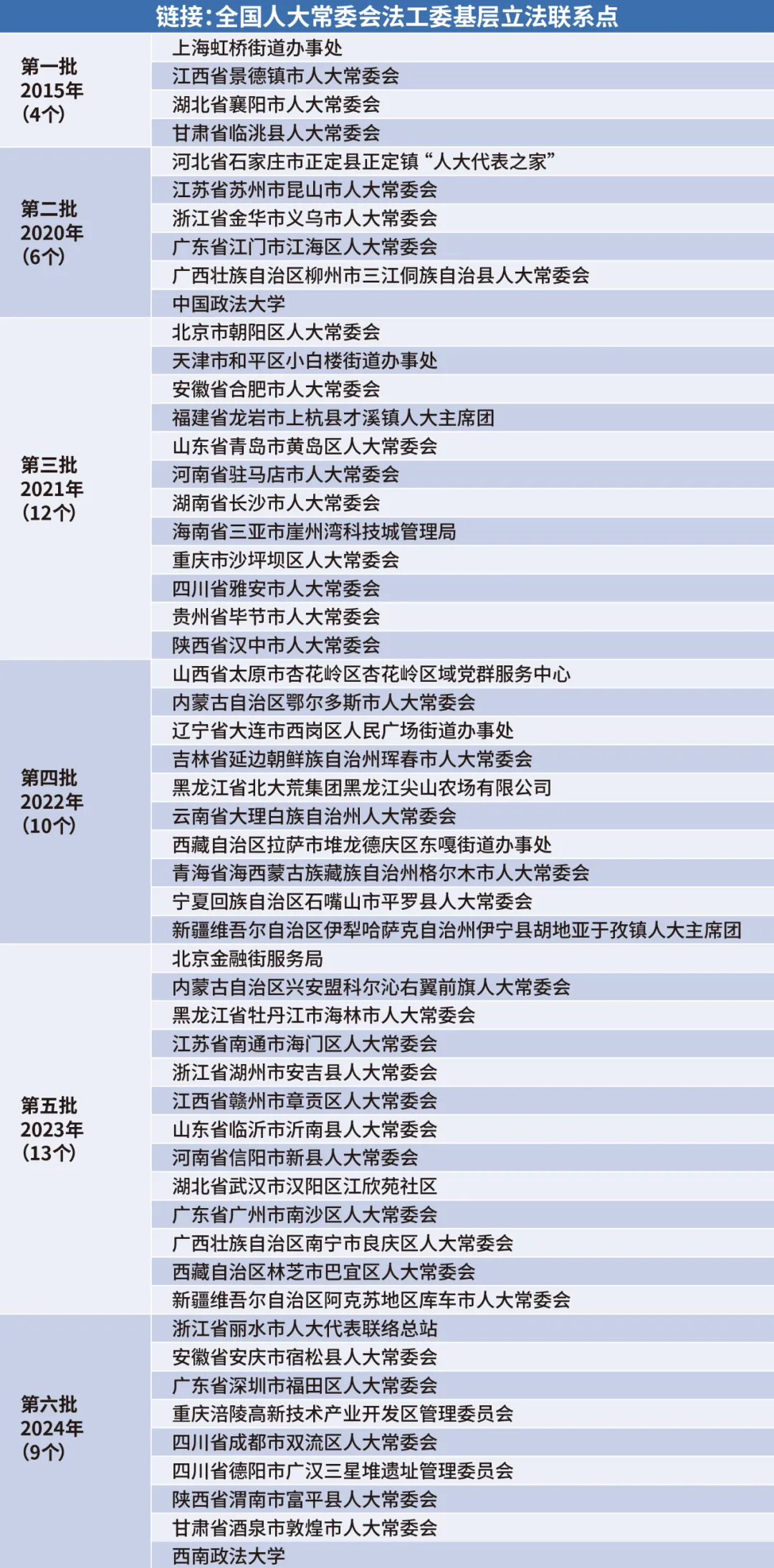 今年是全國人大常委會法工委基層立法聯(lián)系點設(shè)立10周年。
