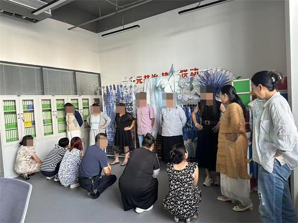 7月18日,在山東省臨沂市蘭山區(qū)人民法院“青橙計(jì)劃”開設(shè)的家庭教育指導(dǎo)課上,家長們被要求扮演蹲在地上的“接受者”,換位思考。受訪者供圖
