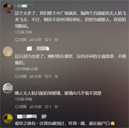 即使沒(méi)有拍到隱私畫(huà)面,無(wú)人機(jī)懸停窗外這一行為本身是否構(gòu)成侵權(quán)?多數(shù)網(wǎng)友認(rèn)為,家是最私密的場(chǎng)所,無(wú)人機(jī)貼近窗戶飛行打破了居民的心理安全防線,其行為本身就帶來(lái)了被窺視的恐懼感和心理不適。