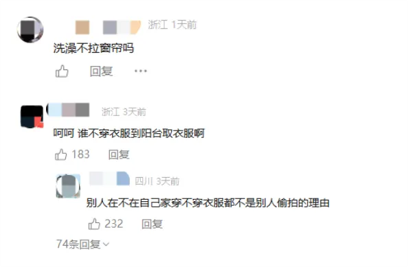 部分網(wǎng)友質(zhì)疑“洗澡為何不拉窗簾”,但更多聲音認(rèn)為,這種質(zhì)疑是典型的“受害者有罪論”。家本身應(yīng)是一個(gè)無(wú)需設(shè)防的空間,享受陽(yáng)光和通風(fēng)是居民的基本權(quán)利,不能因?yàn)闊o(wú)人機(jī)的潛在威脅而犧牲在家的自由與安寧。