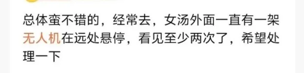 今年4月,上海市某溫泉館女賓室外溫泉池多次遭無(wú)人機(jī)長(zhǎng)時(shí)間懸停,消費(fèi)者赤身泡湯時(shí)感到巨大心理壓力,商家最終決定通過(guò)物理改造杜絕偷拍……