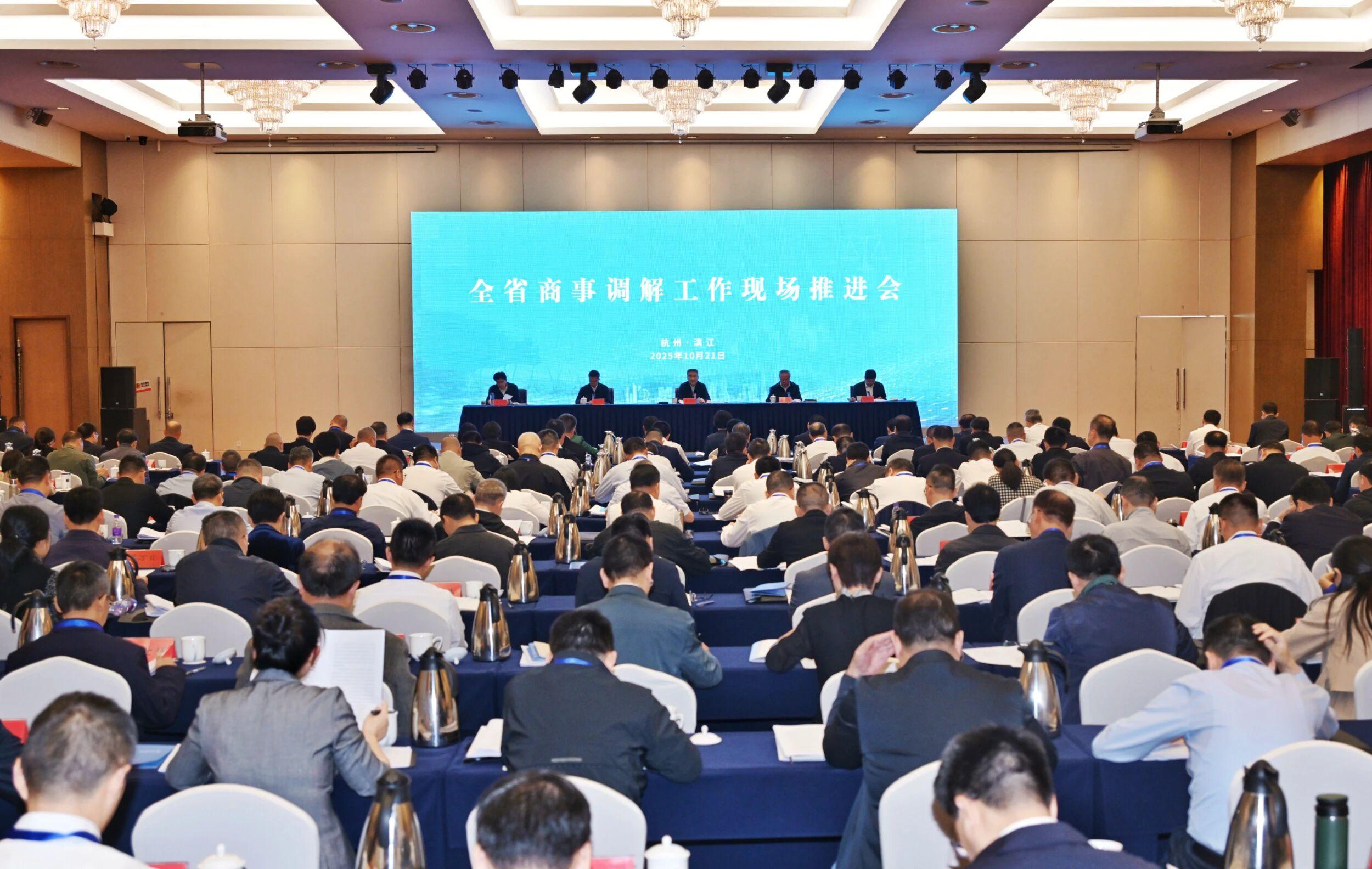 10月21日,浙江省商事調(diào)解工作現(xiàn)場(chǎng)推進(jìn)會(huì)在杭州召開。浙江省委常委、政法委書記王成國(guó)出席會(huì)議并講話,強(qiáng)調(diào)要深學(xué)篤行習(xí)近平法治思想,深入學(xué)習(xí)貫徹習(xí)近平總書記關(guān)于調(diào)解工作的重要指示精神,緊扣“4+1”重要要求和“132”總體工作部署,堅(jiān)持和發(fā)展新時(shí)代“楓橋經(jīng)驗(yàn)”,鞏固提升市場(chǎng)化解紛試點(diǎn)成效,持續(xù)推進(jìn)浙江省商事調(diào)解工作走在前列,助力更高水平平安浙江、法治浙江建設(shè),為奮力譜寫中國(guó)式現(xiàn)代化浙江篇章提供有力保障。省高級(jí)人民法院院長(zhǎng)李占國(guó)講話并作工作部署。省司法廳主要負(fù)責(zé)同志作相關(guān)工作部署。