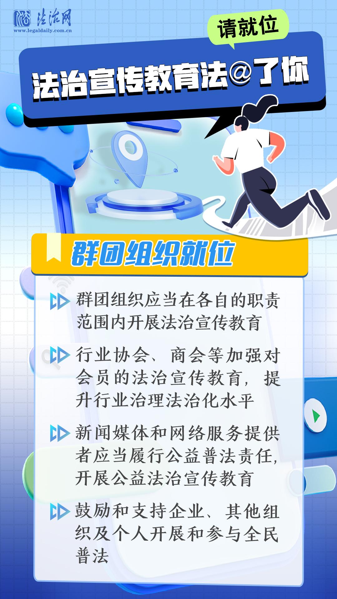 法治宣傳教育法對“誰來普法”作出了很多規(guī)定,相關(guān)主體應(yīng)當如何“對號入座”,切實履行法治宣傳教育責(zé)任?接下來為你一一對位。