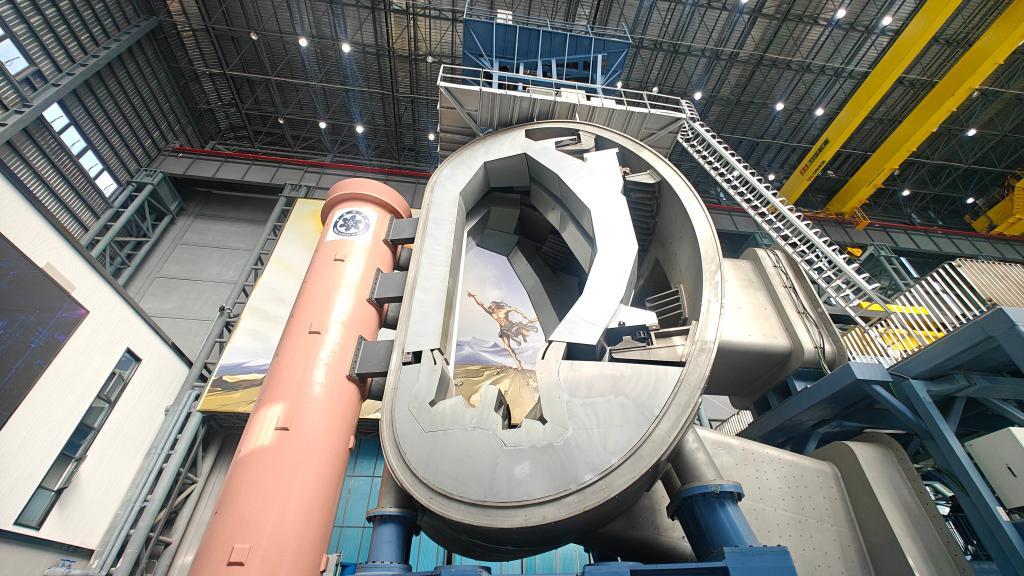 “夸父”園區(qū)11號廠房巨型的穹頂下,一個碩大的“橘子瓣”——八分之一真空室靜臥中央。未來,八個“橘子瓣”將精準(zhǔn)拼接,構(gòu)成下一代“人造太陽”的核心艙室?!皬念A(yù)研、研制、調(diào)試到正式建成并通過驗收,我們歷時十年攻關(guān),形成40余項發(fā)明專利?!卑朔种徽婵帐壹翱傮w安裝系統(tǒng)負責(zé)人劉志宏自豪地說,最近幾個月,“橘子瓣”旁愈加熱鬧,偏濾器原型件給它裝上超強“盾牌”,遙操作系統(tǒng)測試平臺的機械臂徐徐展開,如夸父伸出巨臂,精準(zhǔn)探入裝置內(nèi)部進行檢測。