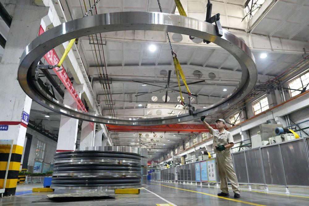 2025年5月22日,工人在位于河南洛陽的洛軸集團風電三車間生產(chǎn)線上作業(yè)。新華社記者 李嘉南 攝