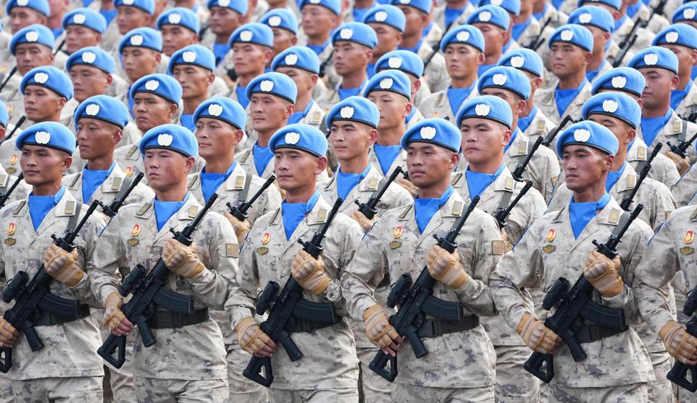 2025年9月3日,紀(jì)念中國(guó)人民抗日戰(zhàn)爭(zhēng)暨世界反法西斯戰(zhàn)爭(zhēng)勝利80周年大會(huì)在北京隆重舉行。這是維和部隊(duì)方隊(duì)接受檢閱。新華社記者 王建華 攝