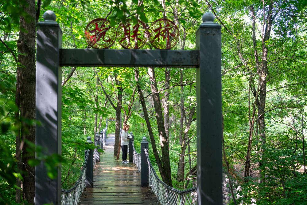在黑龍江集賢縣、樺南縣、雙鴨山市嶺東區(qū)交界處的七星山間,分布著一系列東北抗聯(lián)密營遺址??箲?zhàn)時(shí)期,東北抗聯(lián)在此建立起兵工廠、被服廠、軍政干校、后方醫(yī)院、秘密營地、修械所等抗日基地,為抗日斗爭提供保障。近年來,當(dāng)?shù)丶哟髮ζ咝巧絿疑止珗@的建設(shè)投入,發(fā)揮其紅色教育、科普研學(xué)的愛國主義教育功能。這是2025年6月17日,游客在七星山國家森林公園參觀。