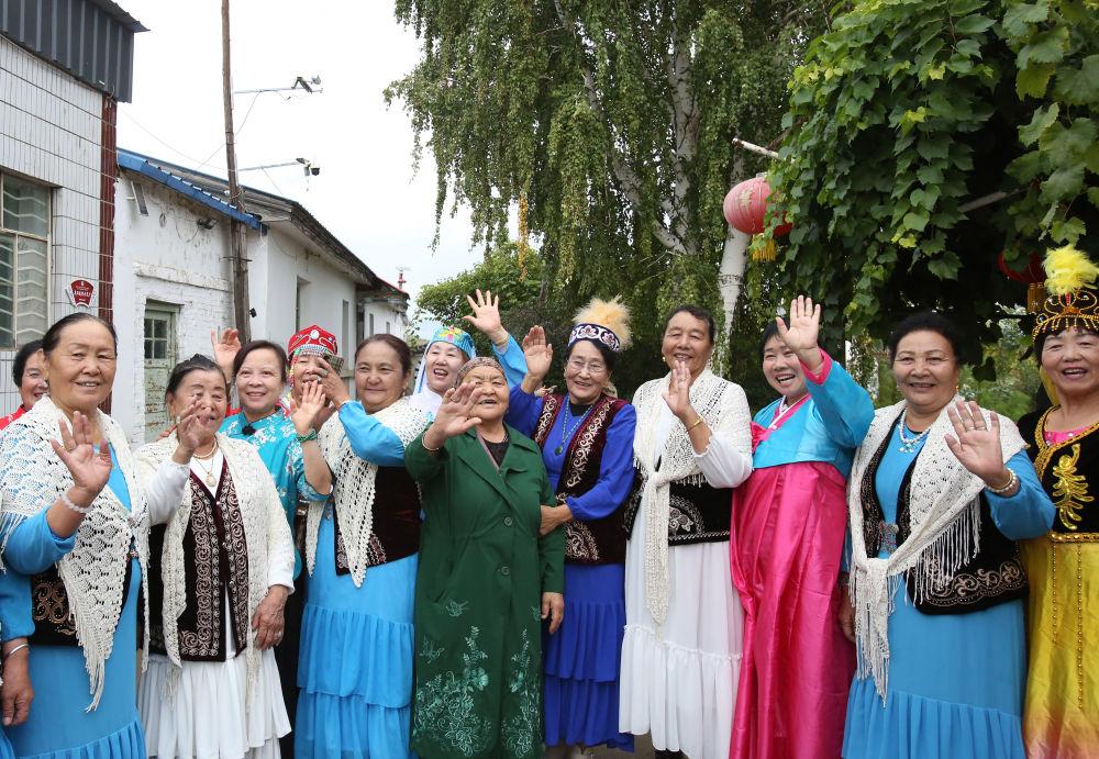 2025年9月9日,新疆阿勒泰地區(qū)阿勒泰市紅墩鎮(zhèn)的老人在“戶兒家”文化大院合影,該鎮(zhèn)居民由漢族、哈薩克族、維吾爾族、蒙古族等11個(gè)民族組成?!皯魞杭摇痹从谇迥枪_克族對(duì)甘肅、山西、陜西等省遷居紅墩鎮(zhèn)的40戶漢族居民的稱呼。100多年來,“戶兒家”幾代人與各族群眾相互融合、共同發(fā)展,成為各民族相互交融的典范。