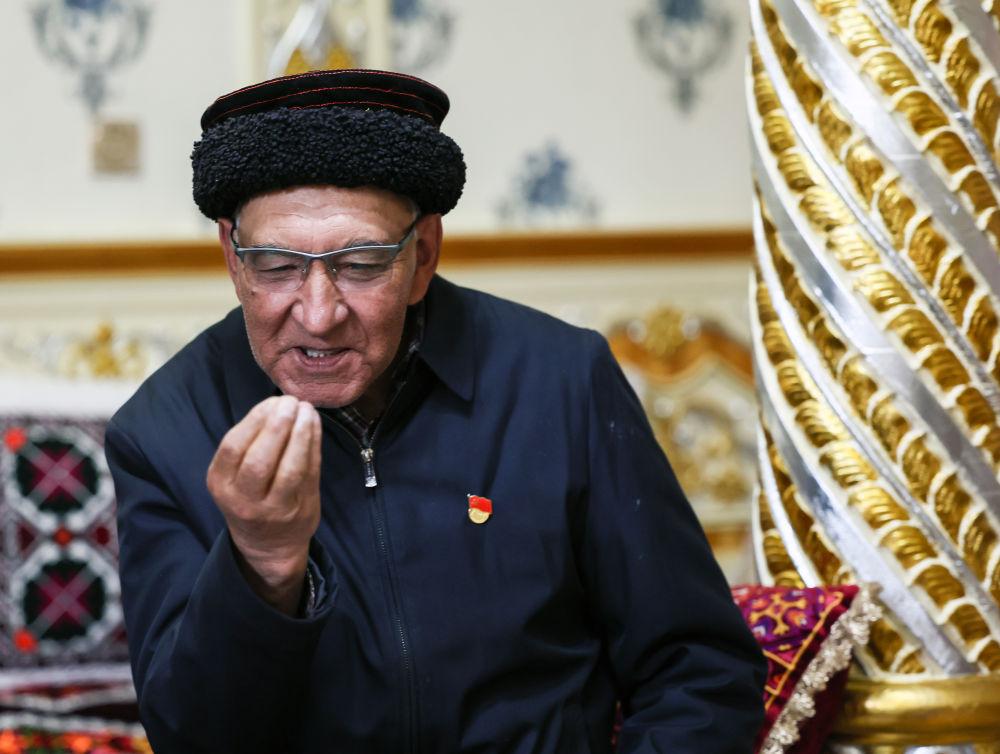 2023年9月4日,“時(shí)代楷?!崩R尼·巴依卡的父親巴依卡老人在新疆塔什庫爾干塔吉克自治縣的家中接受采訪。生活于帕米爾高原上的塔吉克族兒女,素來心中懷有“家是塔縣,國(guó)是中國(guó),放牧守邊是職責(zé)”的愛國(guó)守邊精神。巴依卡老人一家三代70年接續(xù)守邊護(hù)邊,愛國(guó)奉獻(xiàn)的壯舉感動(dòng)了無數(shù)國(guó)人?!斑吘尘€是中國(guó)的邊境線,紅其拉甫是中國(guó)56個(gè)民族的紅其拉甫,我們的56個(gè)民族就要像石榴籽一樣緊緊抱在一起。”巴依卡老人說。