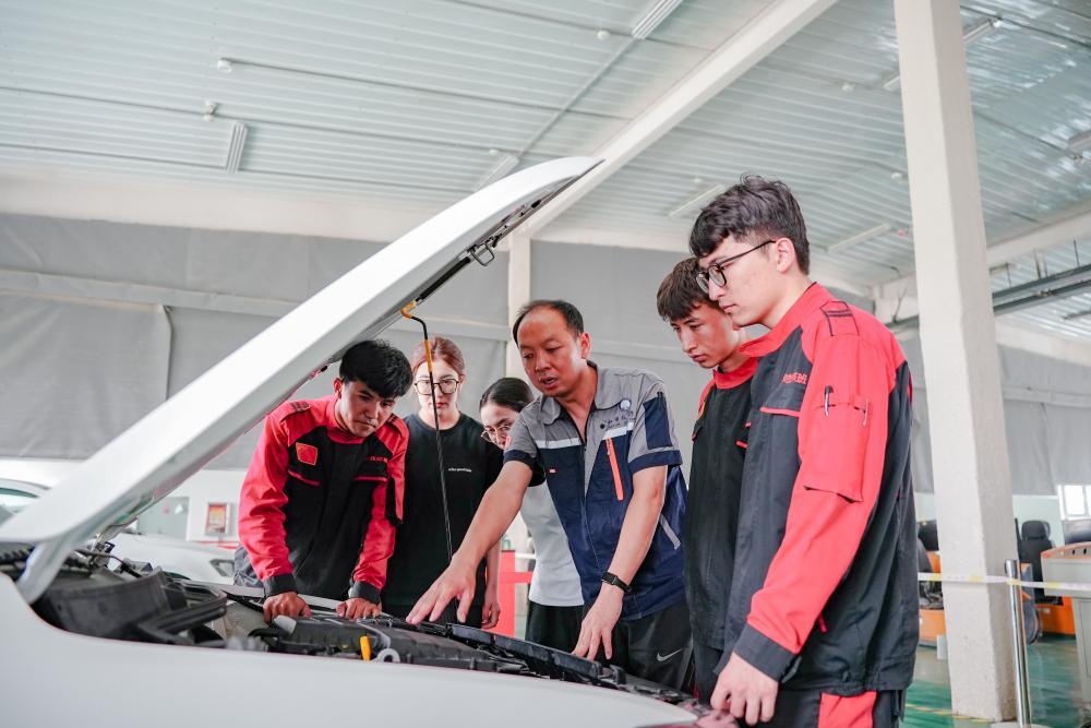 2025年6月27日,在新疆和田技師學(xué)院,援疆教師李寶(中)和當(dāng)?shù)亟處熞煌笇?dǎo)學(xué)生維修汽車。該校是北京市對(duì)口援疆幫扶單位之一,2020年以來,北京市向該校派出3批次累計(jì)30人次的援疆教師隊(duì)伍,他們?cè)趨⑴c學(xué)校管理、承擔(dān)教學(xué)任務(wù)的基礎(chǔ)上,還主動(dòng)開展“傳幫帶”培養(yǎng)當(dāng)?shù)亟處?,積極組織和指導(dǎo)學(xué)生參與各類技能競(jìng)賽,為當(dāng)?shù)芈殬I(yè)技術(shù)教育高質(zhì)量發(fā)展貢獻(xiàn)力量。