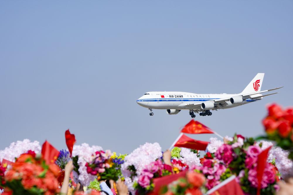 飛機(jī)沿著跑道滑行,飛向萬里碧空。送別的人群,沉浸在幸福的喜悅中,久久不愿離去。