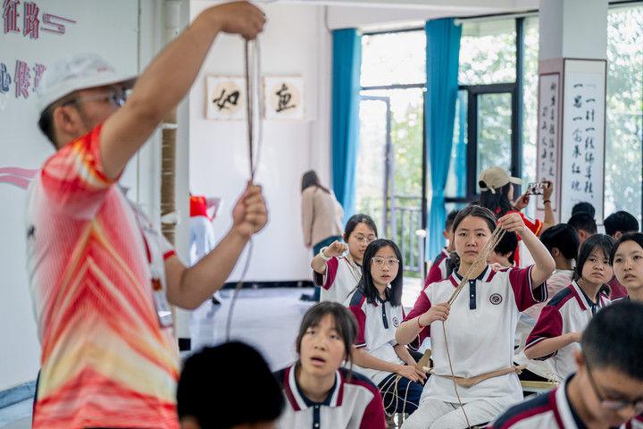2025年5月12日,云南省昭通市威信縣第一中學(xué)學(xué)生在大屏上紅色研學(xué)實(shí)踐基地體驗(yàn)編織草鞋。200余名學(xué)生在紅色研學(xué)實(shí)踐基地親手編織草鞋、制作蠟染,并參觀了扎西會(huì)議舊址、紅軍長(zhǎng)征過云南情景體驗(yàn)館,在實(shí)踐互動(dòng)中重溫紅色革命歷史。威信縣立足紅色文化資源優(yōu)勢(shì),先后建成扎西會(huì)議紀(jì)念館、紅軍長(zhǎng)征標(biāo)語(yǔ)館等紅色文化展館,以舊址遺跡為“教室”,以文物史料為“教材”,設(shè)計(jì)開發(fā)多門精品研學(xué)課程和線路,在深入開展紅色研學(xué)系列活動(dòng)中傳承紅色基因。