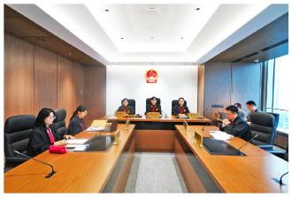 圖為5月21日,北京國際商事法庭巡回審判首案在國際商事仲裁中心(北京)實體平臺公開審理。 本報記者 徐偉倫 攝