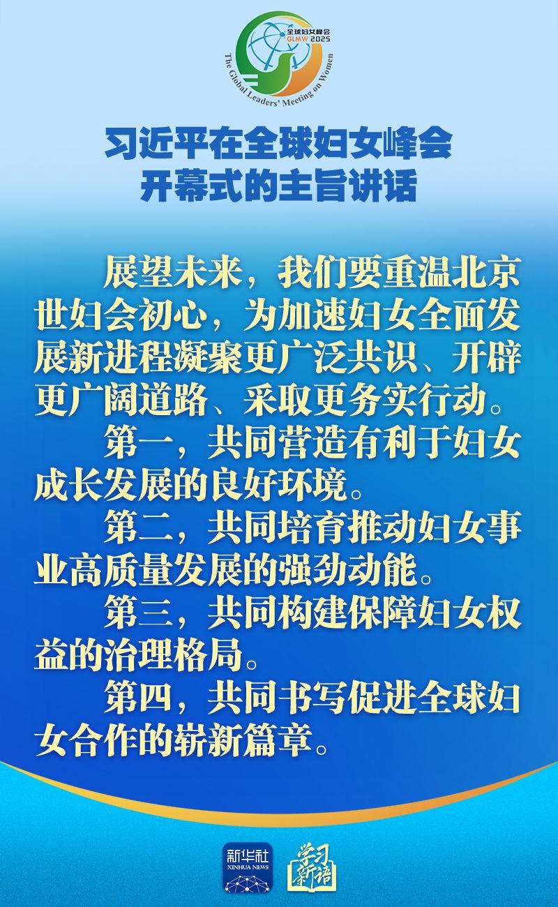 10月13日上午,國家主席習(xí)近平在北京國家會議中心出席全球婦女峰會開幕式并發(fā)表題為《弘揚(yáng)北京世婦會精神 加速婦女全面發(fā)展新進(jìn)程》的主旨講話。講話金句,一起學(xué)習(xí)!
