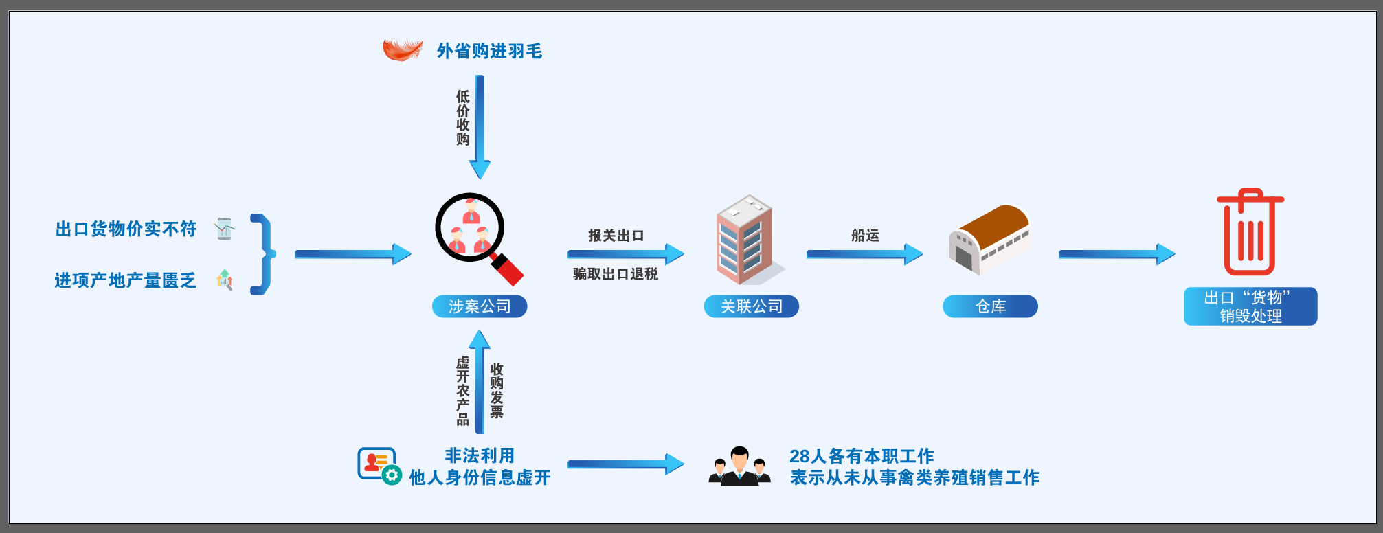 至此,以“精絨”為道具的虛開農(nóng)產(chǎn)品收購發(fā)票、騙取出口退稅的全鏈條違法事實徹底顯現(xiàn)。