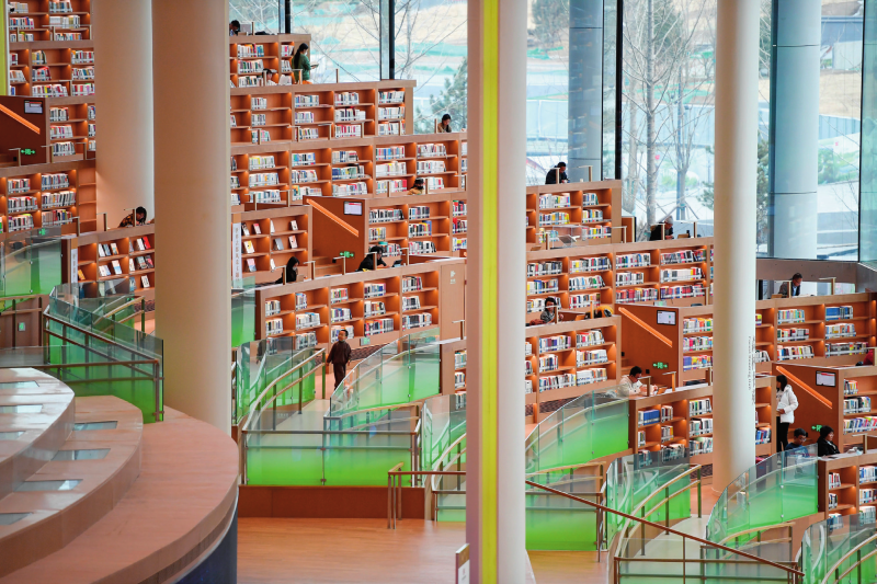 讀者在北京城市圖書館內(nèi)參觀閱覽(2024年2月28日攝)鞠煥宗攝/本刊