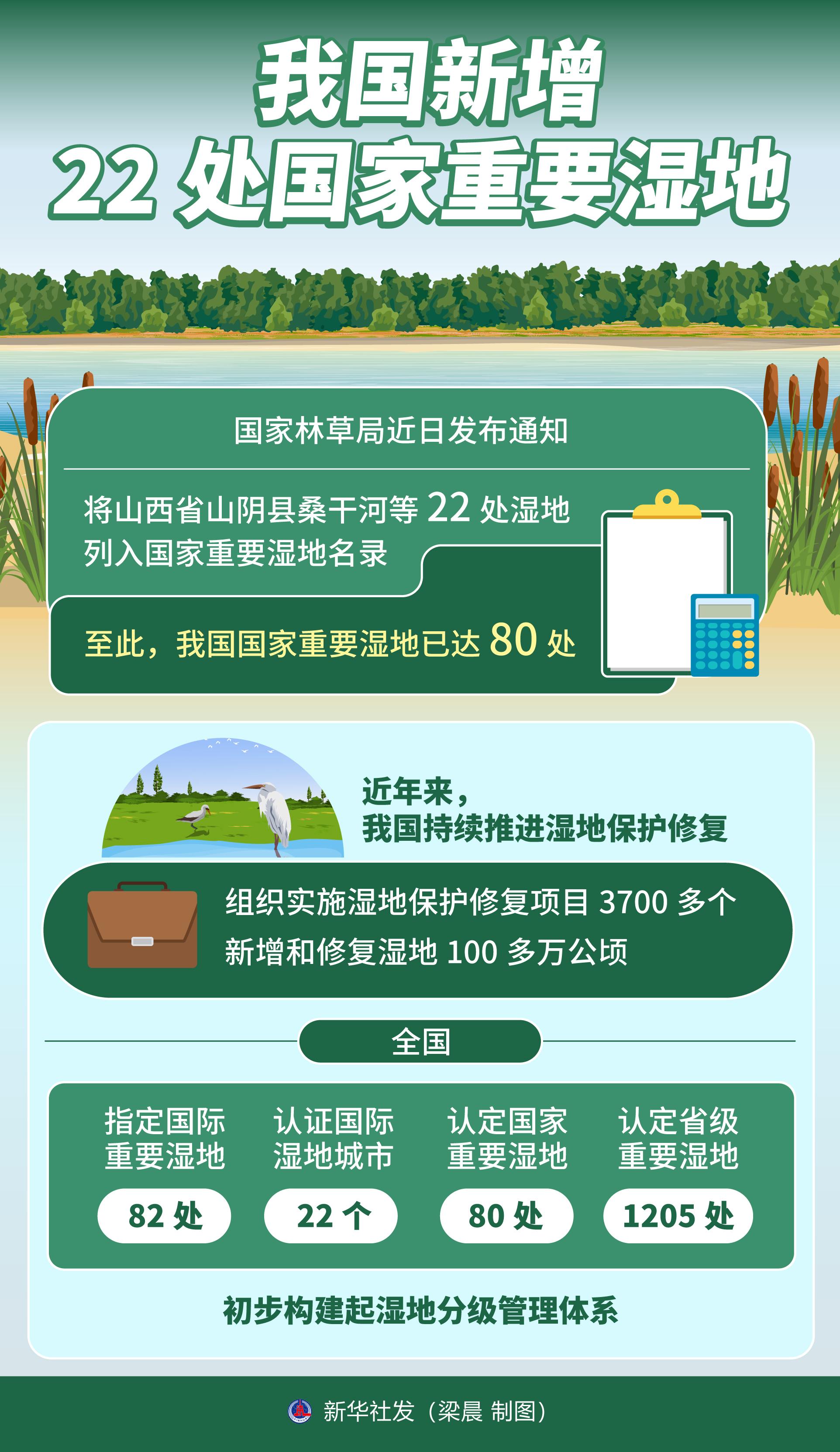 新華社北京10月20日電(記者黃垚)國家林草局近日發(fā)布通知,將山西省山陰縣桑干河等22處濕地列入國家重要濕地名錄。至此,我國國家重要濕地已達(dá)80處。