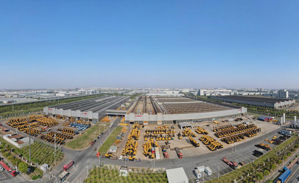 空中俯瞰上海三一重機(jī)股份有限公司外景(無(wú)人機(jī)全景照片,2025年4月15日攝)。新華社記者 方喆 攝