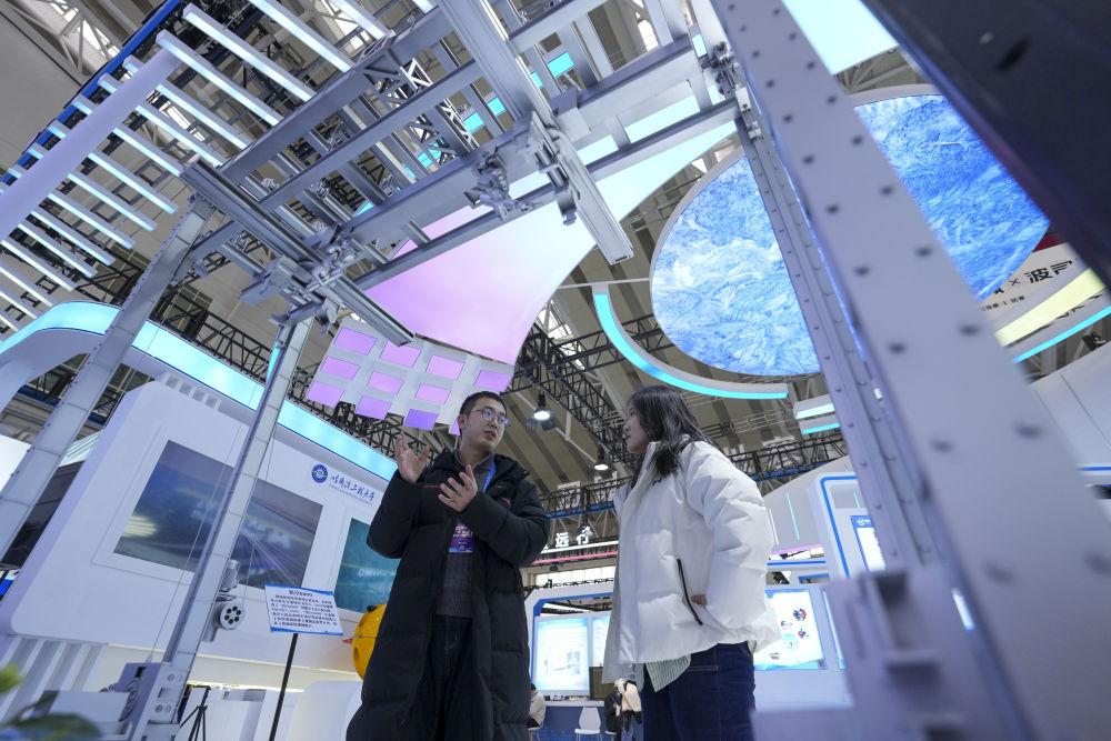 2026年1月6日,在2026哈爾濱國際冰雪經(jīng)濟(jì)博覽會(huì)展會(huì)現(xiàn)場,參會(huì)嘉賓(左)為參觀者介紹智能大型冰雕自動(dòng)化搭建機(jī)器人。本屆博覽會(huì)旨在通過成果展示、產(chǎn)業(yè)交流與投資合作,展現(xiàn)“冰雪+經(jīng)濟(jì)”“冰雪+科技”等融合發(fā)展成果,為全球投資者提供市場機(jī)遇。