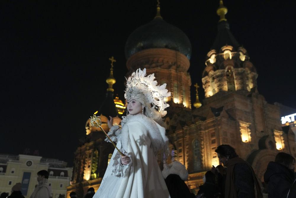 2025年12月15日,游客在哈爾濱建筑藝術(shù)廣場攝影旅拍。