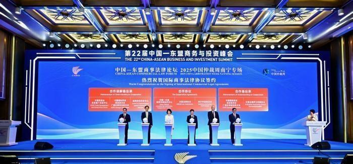 第22屆中國(guó)—東盟商務(wù)與投資峰會(huì)9月17日—21日在廣西南寧召開,期間中國(guó)—東盟商事法律論壇在南寧舉辦。活動(dòng)中,中華人民共和國(guó)二級(jí)大法官、廣西壯族自治區(qū)高級(jí)人民法院院長(zhǎng)黃海龍,中國(guó)國(guó)際貿(mào)易促進(jìn)委員會(huì)副會(huì)長(zhǎng)李慶霜等嘉賓見證系列合作成果的達(dá)成。