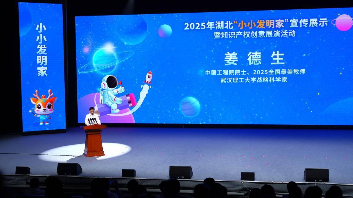 “小手拉大手,創(chuàng)新一起走?!?月23日下午,為大力激發(fā)廣大青少年尊重知識(shí)、崇尚創(chuàng)新意識(shí),構(gòu)建覆蓋全省中小學(xué)生的科技創(chuàng)新活動(dòng)平臺(tái),由湖北省知識(shí)產(chǎn)權(quán)局主辦、湖北省發(fā)明協(xié)會(huì)與極目新聞承辦的2025年湖北“小小發(fā)明家”宣傳展示暨知識(shí)產(chǎn)權(quán)創(chuàng)意展演活動(dòng)在東湖之濱圓滿舉行。中國(guó)工程院院士、2025年全國(guó)最美教師、武漢理工大學(xué)戰(zhàn)略科學(xué)家姜德生教授出席活動(dòng)并為青少年開講。