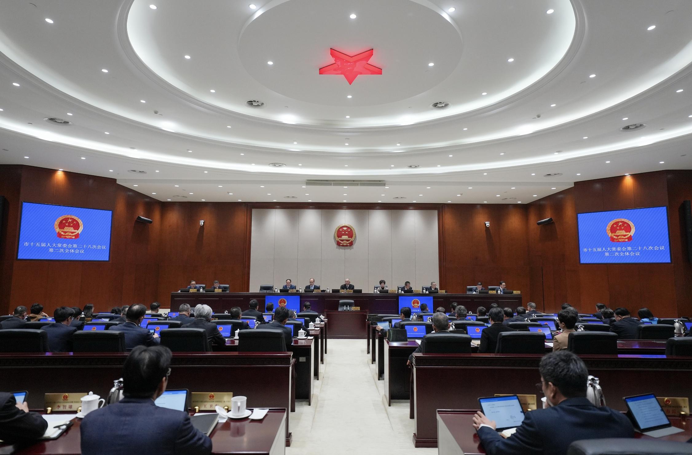 武漢市第十五屆人民代表大會(huì)常務(wù)委員會(huì)第二十八次會(huì)議現(xiàn)場。彭年 攝
