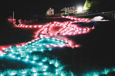 8月1日晚,僑鄉(xiāng)福建省閩清縣瓷天下·海絲谷景區(qū)被燈光秀點亮。以地圖上的福州為起點,燈帶順著海絲沿線國家次第亮起,一張“海絲地圖”隨風(fēng)搖曳,吸引了大量游客。