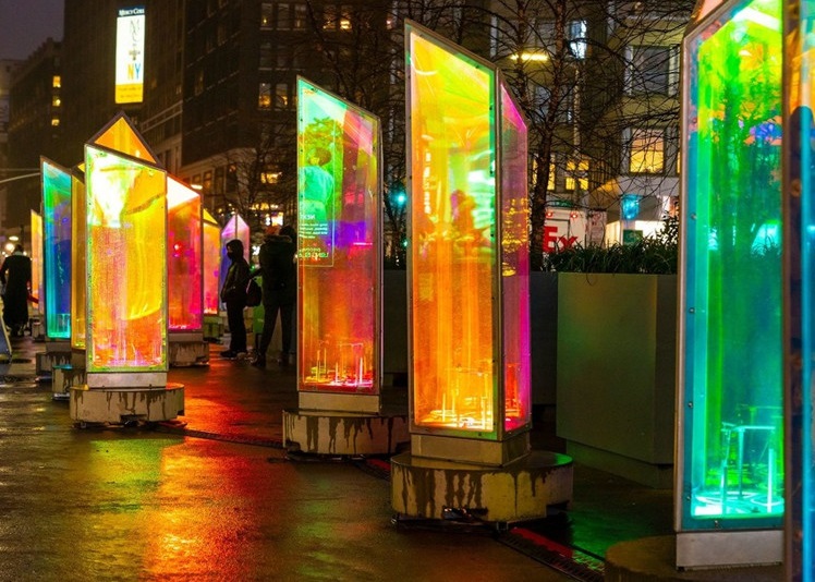 人民網(wǎng)訊 當?shù)貢r間1月26日,美國紐約百老匯大道,街頭放置“棱鏡”燈光裝置,五彩繽紛猶如萬花筒,行人紛紛駐足觀看。