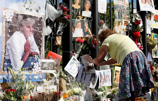 這是2017年8月31日一名女子在英國(guó)倫敦肯辛頓宮門(mén)前擺放紀(jì)念卡片悼念戴安娜的資料照片。當(dāng)天是英國(guó)戴安娜王妃去世20周年紀(jì)念日。