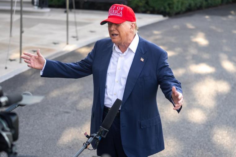 7月1日,在美國首都華盛頓白宮,美國總統(tǒng)特朗普在登機(jī)前回答記者提問。新華社記者胡友松攝