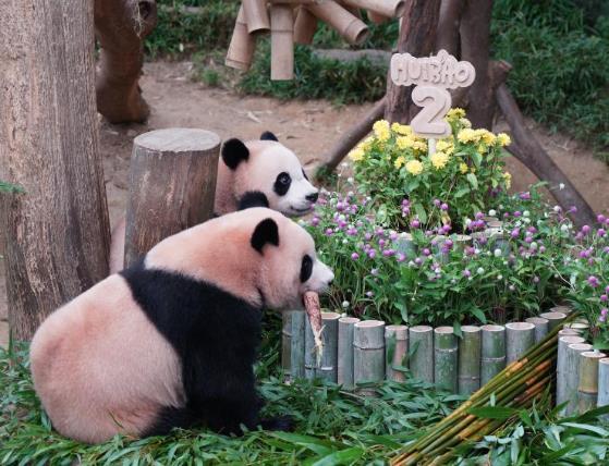 愛寶樂園為雙胞胎大熊貓準(zhǔn)備了用竹子制成的大型生日蛋糕,生日禮物則包括清涼的冰床和各類用竹子制成的“豐容”玩具等。據(jù)愛寶樂園方面介紹,雙胞胎出生時(shí)體重分別只有180克和140克,如今體重都已接近70公斤。