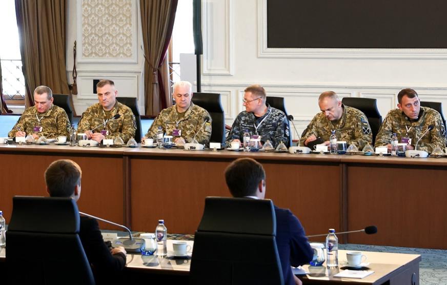 圖為當(dāng)?shù)貢r間2025年6月2日,土耳其伊斯坦布爾,烏克蘭軍事官員出席在奇拉甘宮舉行的俄烏新一輪談判。 CFP供圖