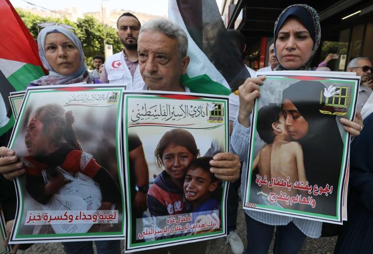 7月29日,人們?cè)诩s旦河西岸城市納布盧斯集會(huì),抗議以色列對(duì)加沙實(shí)施的饑餓政策,呼吁?;鹬箲?zhàn)。新華社發(fā)(尼達(dá)爾·艾仕塔耶?dāng)z)