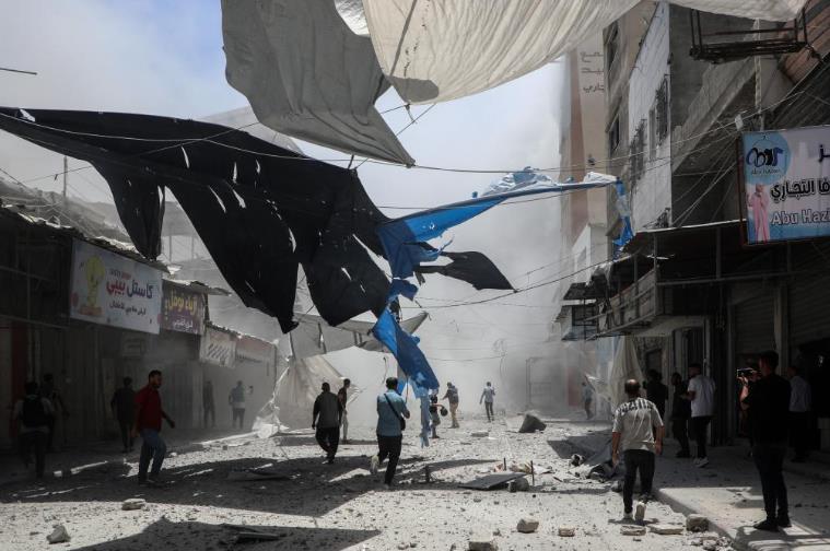5月31日,人們?cè)诩由吵遣榭丛庖攒娨u擊后的廢墟。新華社發(fā)(里澤克·阿卜杜勒賈瓦德攝)
