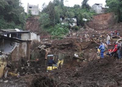 10月13日,在墨西哥普埃布拉州瓦烏奇南戈市,救援人員在強(qiáng)降雨引發(fā)的山體滑坡現(xiàn)場進(jìn)行搜救。新華社發(fā)(弗朗西斯科·卡涅多攝)