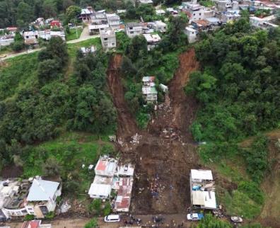 這是10月13日在墨西哥普埃布拉州瓦烏奇南戈市拍攝的降雨引發(fā)的山體滑坡現(xiàn)場(無人機(jī)照片)。新華社發(fā)(弗朗西斯科·卡涅多攝)